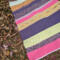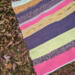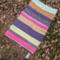 This rug has some personality, ready for the beach and a frosty beverage. It is a plain woven rug with no extra pattern, but the colors scream "LOOK AT ME". It is pink, purple, yellow, lime green, and a little bit more. It measures 24" x 36".